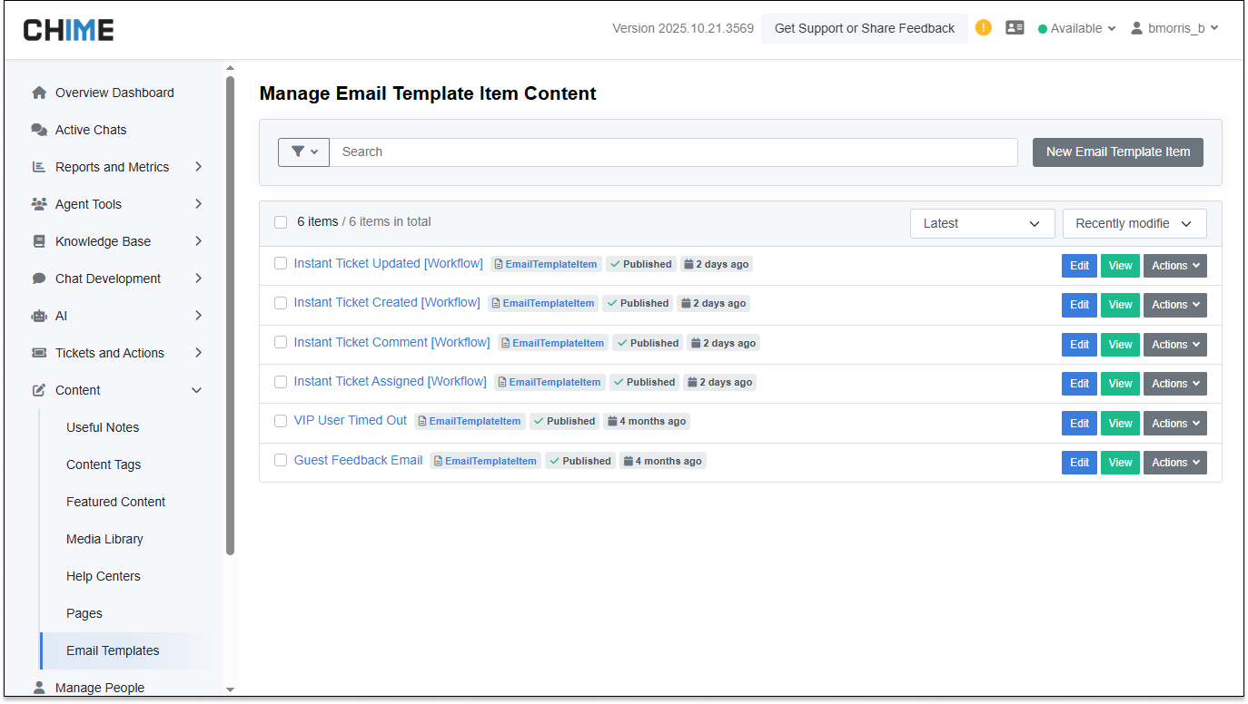 October 22nd 2025 – Release Notes: Ticket Sorting & Filtering, Enhanced Email Templates, Connect to Agent Improvements, and Reporting Update