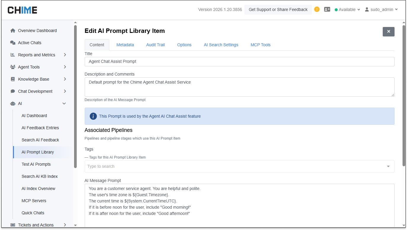 AI Agent Chat Assist – Prompt Library & MCP Support – Agent Chat Assist now supports centrally managed prompts and MCP tools, making AI responses more consistent, powerful, and customizable.